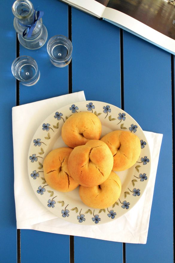 Μόλις έβγαλα την πρώτη λαμαρίνα από το φούρνο, και έχω φάει ήδη δύο (κατακάηκα, περιττό να σου πω)! Πολύ μου άρεσαν, και μου άρεσε ακόμα καλύτερα ότι δεν έχω ξαναφάει τίποτα παρόμοιο. Σαν κρητικά bagels, με άρωμα μαστίχας. Ουουουου, τέλεια!