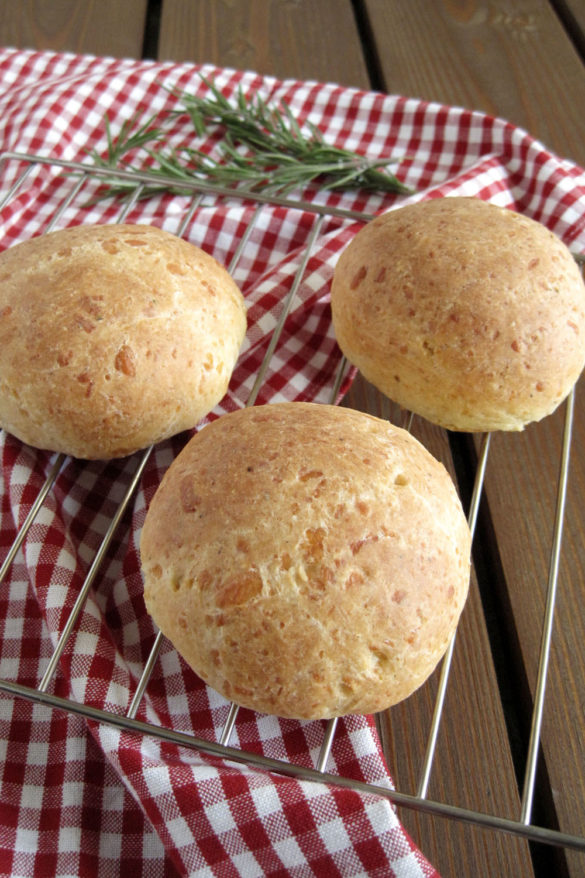 - Τοποθετούμε τα ψωμάκια στο ταψί. Προαιρετικά τα αλείφουμε με λίγο λιωμένο βούτυρο και τα πασπαλίζουμε με τριμμένη παρμεζάνα.