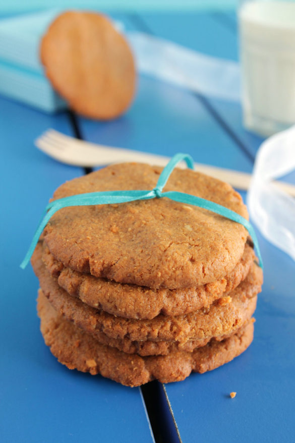 Μπισκοτακια με πολυ ενδιαφεροντα υλικα,ευκολα στην παρασκευη τους και..φυσικα ευκολοφαγωτα.Ειναι αληθεια οτι ποτε δεν χρησιμοποιησα φυστικοβουτυρο σε καποια απο τις συνταγες μου.Νομιζω οτι δεν μου αρεσει ιδιαιτερα.Ομως πως μια φωτογραφια σε ‘παιρνει’ απο το χερι και σε οδηγει στη κουζινα σαν υπνοβατη, ενω παραλληλα σου ψιθυριζει λογια παραπλανητικα??Νομιζω οτι δεν μπορω ν’αντισταθω.