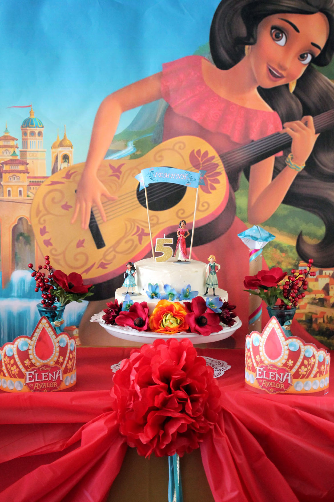 Η Έλενα είναι Λατίνα και αγαπά τα ζωηρόχρωμα φορέματα, ενώ το βασίλειό της είναι πανέμορφο και ολάνθιστο. Με αυτά ως βάση διαμορφώθηκαν οι χρωματικές επιλογές, το μενού και η διακόσμηση του πάρτι μας.