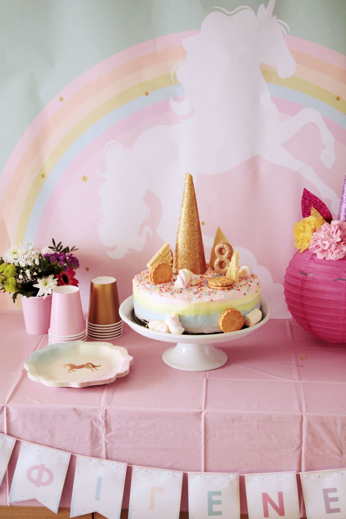 Για τα όγδοα γενέθλια της Ιφιγένειας οργανώσαμε ένα πάρτι μονόκερος. Ήταν μίνιμαλ, αέρινο και ρομαντικό, με αρκετά χειροποίητα στοιχεία.