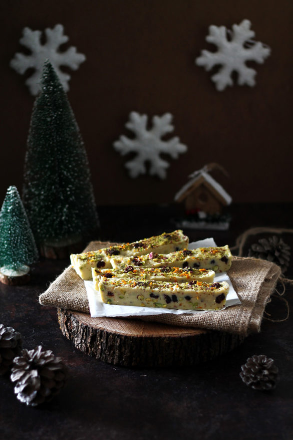 Χριστουγεννιάτικο fudge με cranberries και φιστίκια Αιγίνης.